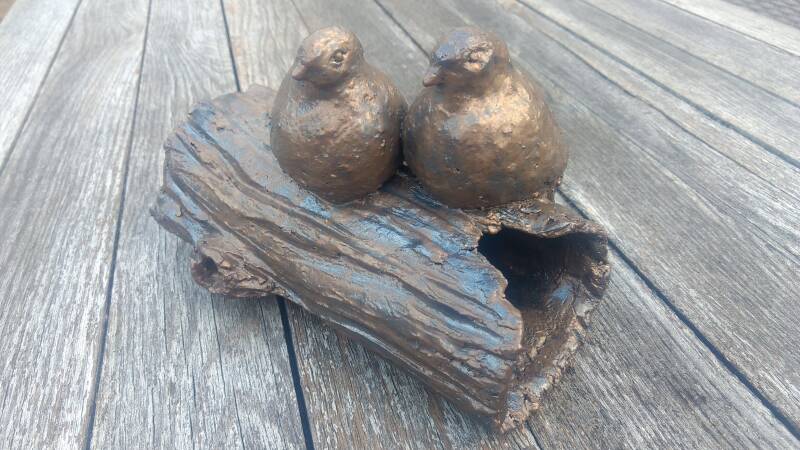 Nu wilde ik een rode zachte klei met weinig chamotte, ook wilde ik er een extra patrijsje bijzetten, qua opzet ben ik terug naar de boomstam gegaan omdat dit de voorkeur was.